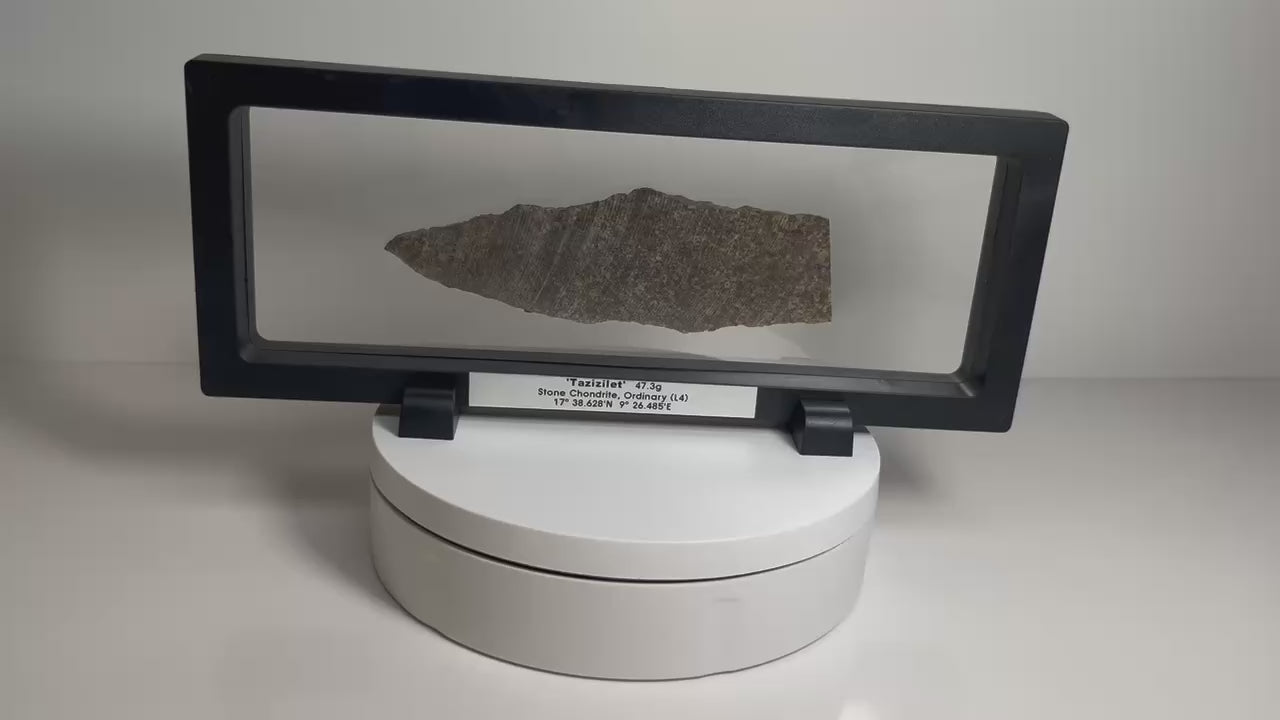 Item Details: Specimen NT0018 is approx. 5" in length, weighing a total of 47.3 grams. Included is a floating 3D membrane display case, beautifully displaying your very own piece of the cosmos! Please contact me with any questions regarding this acquisition, or see the abstract from the official certifying source (Lunar and Planetary Institute) here: https://www.lpi.usra.edu/meteor/docs/mb103.pdf
