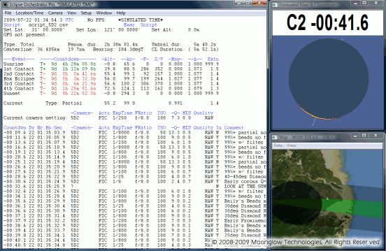 This software controls cameras during a solar eclipse or Venus/Mercury transit so that you can be free to concentrate on observing the event visually. Preprogram all exposures using our handy script wizard customized for your exact coordinates and camera. Enter your latitude/longitude coordinates and the software will automatically calculate local circumstances for you. Then, all camera actions can be timed in reference to these specific eclipse events. All features are optional, so the program can be used for as little or as much as desired.