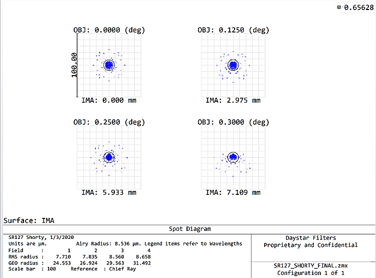 - Quality 127mm doublet achromat. Custom designed, coated and figured for Hydrogen Alpha